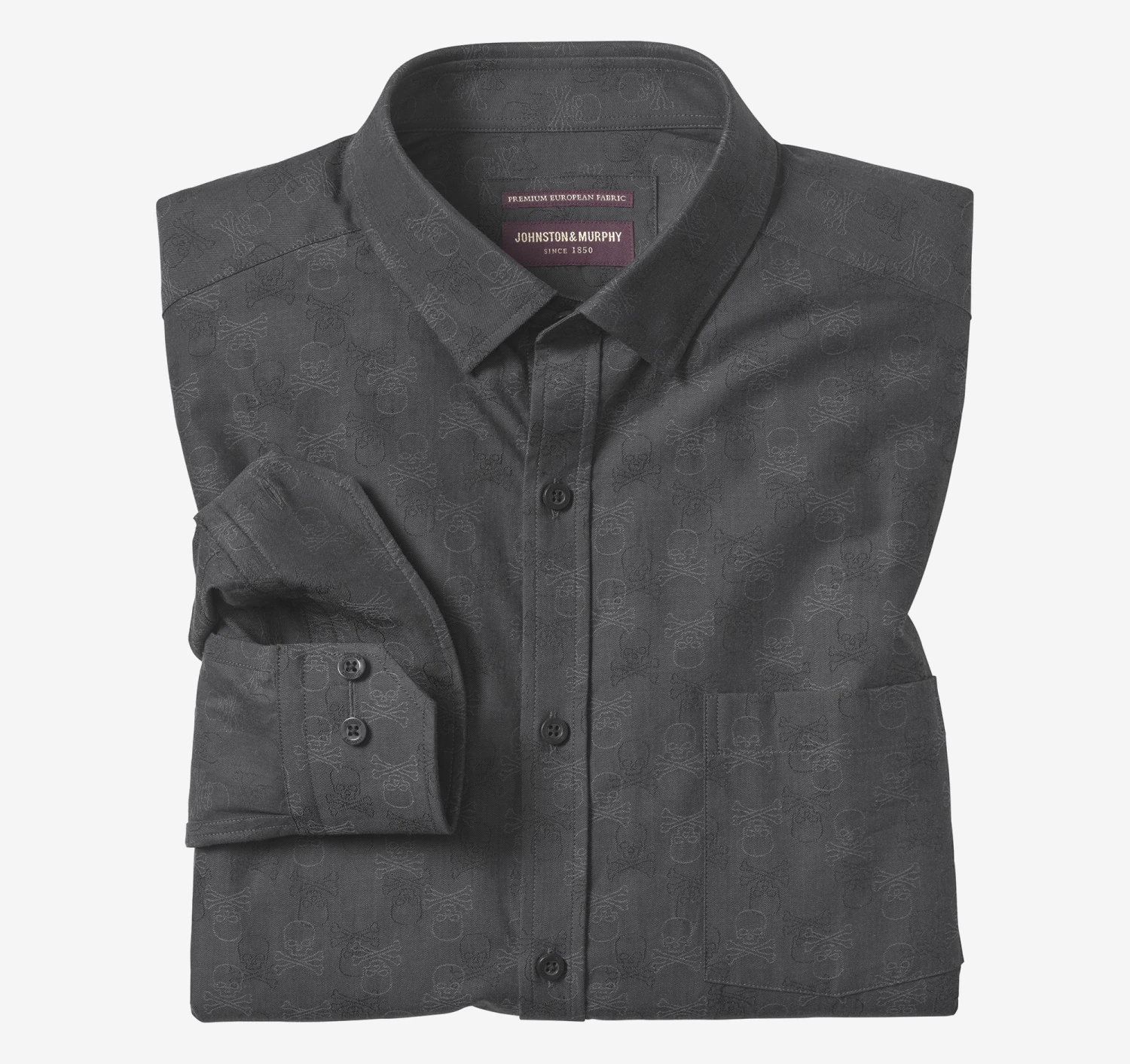 - Point collar with hidden buttons for stay-in-place smoothness.